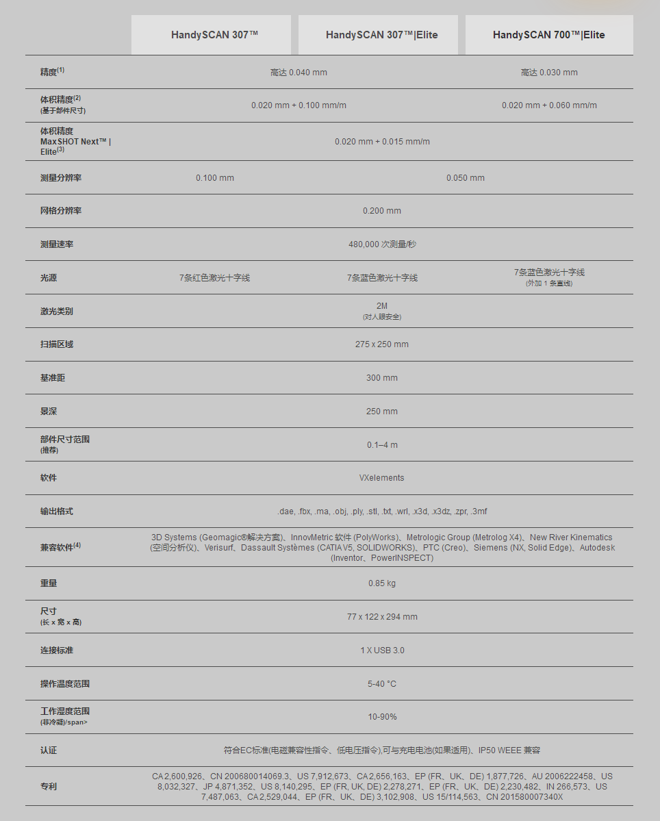 HandySCAN 3D 的技術(shù)規(guī)格使其成為便攜式 3D 測量技術(shù)的行業(yè)典范。